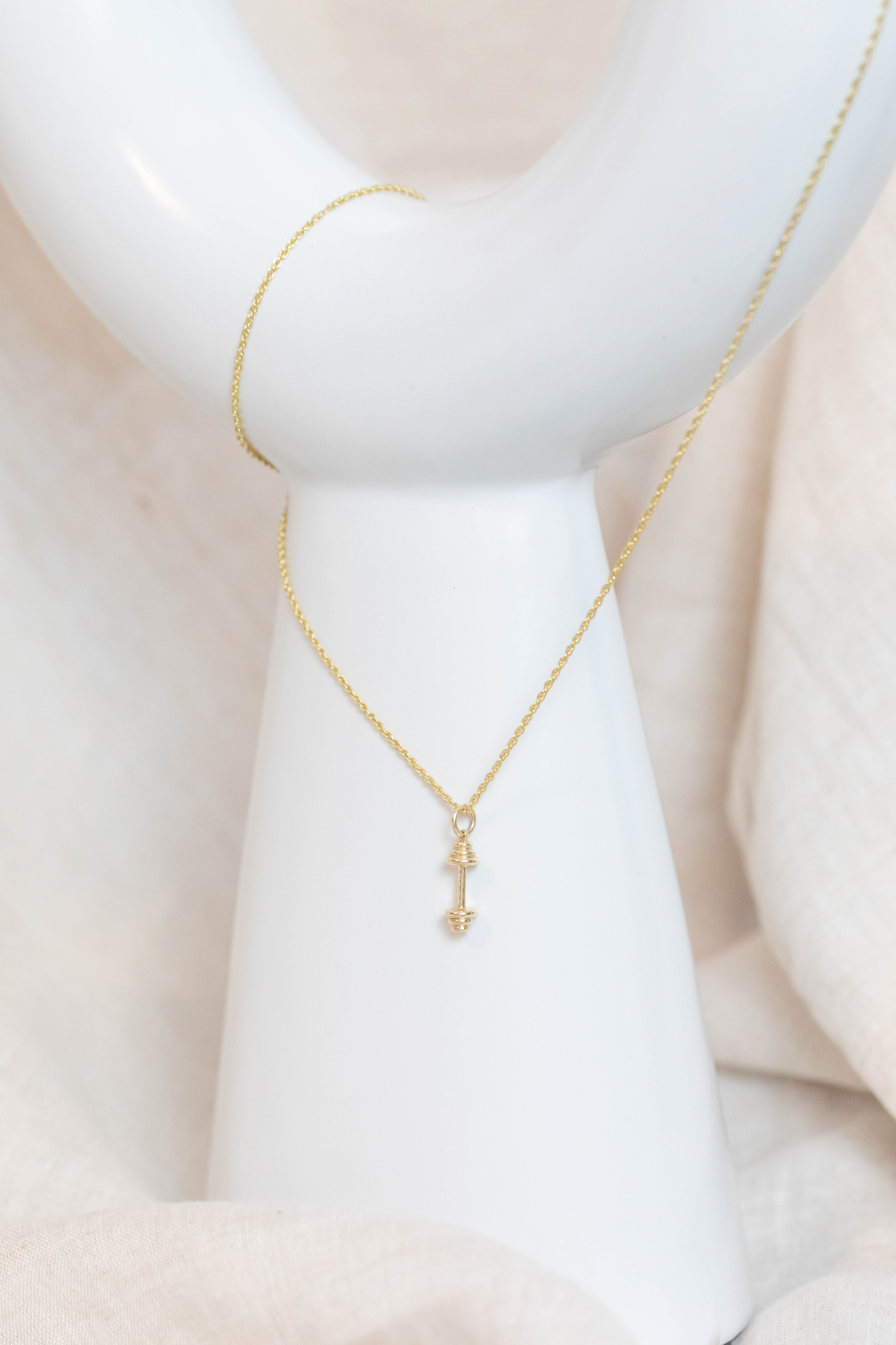 For the fit and fashionable woman in your life. This sturdy and sexy barbell/dumbbell pendant (chain sold separately on request) is made from solid 10k gold, with a generous 5mm bail that will fit on many gold chains of varying thickness. It makes a great statement piece but is subtle enough to layer with your favorite necklaces, and will never tarnish or turn green because it’s not gold-plated or filled: it’s real gold, so it’ll look beautiful for as long as you wear it.