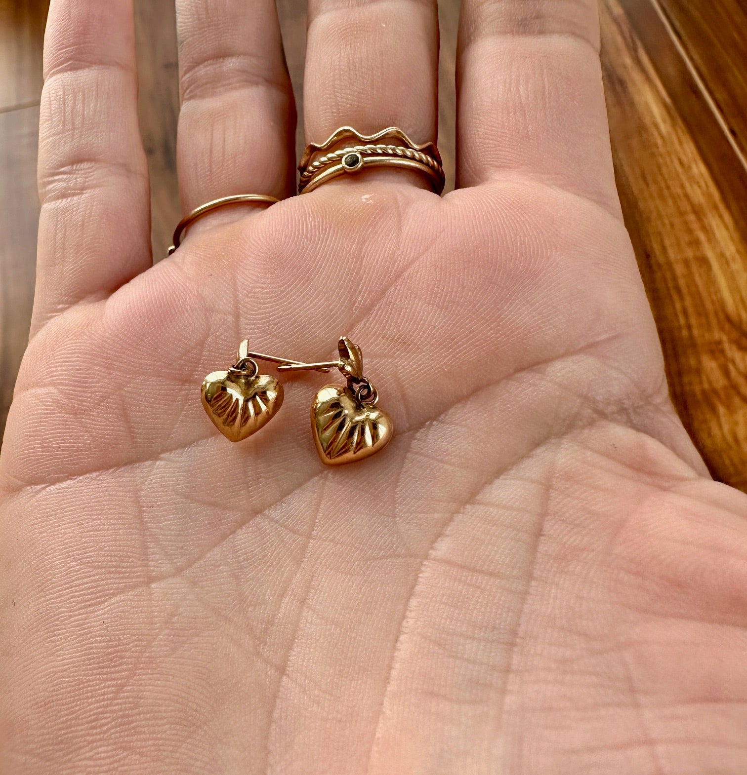 10k gold puffy heart dangle earrings. Very good condition.